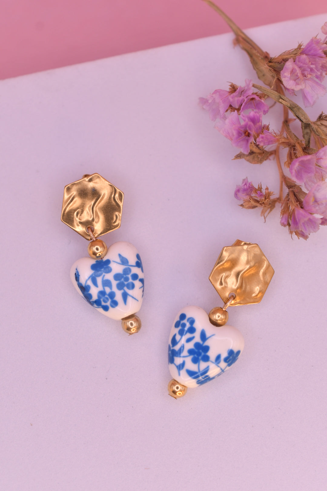 Aretes de acero inoxidable con dijes de cerámica.