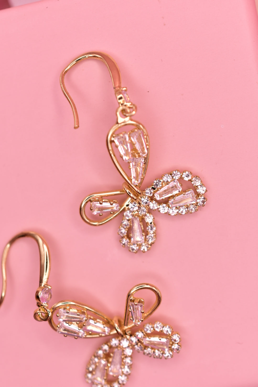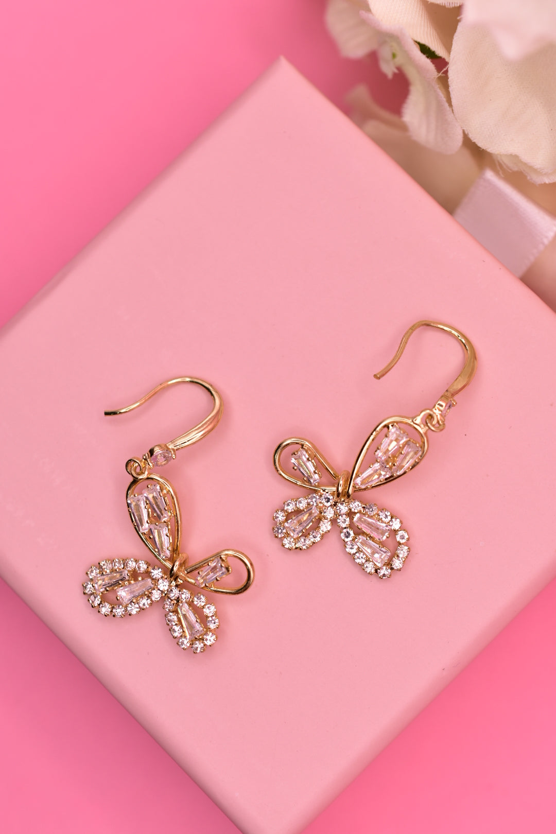 Aretes largos en forma de Mariposa con diamantes de imitación.