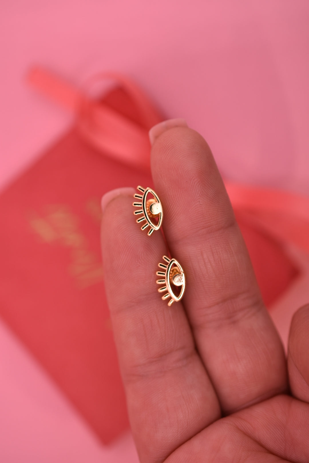 Aretes tipo broquel con diseño de ojito.