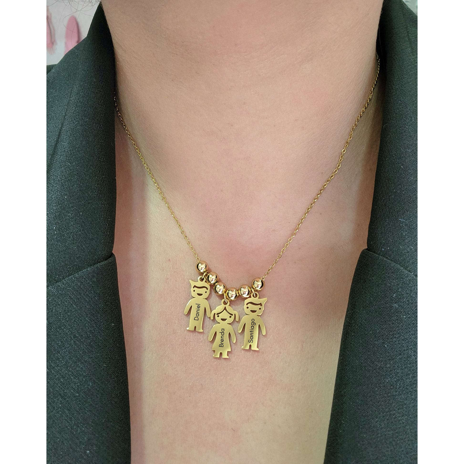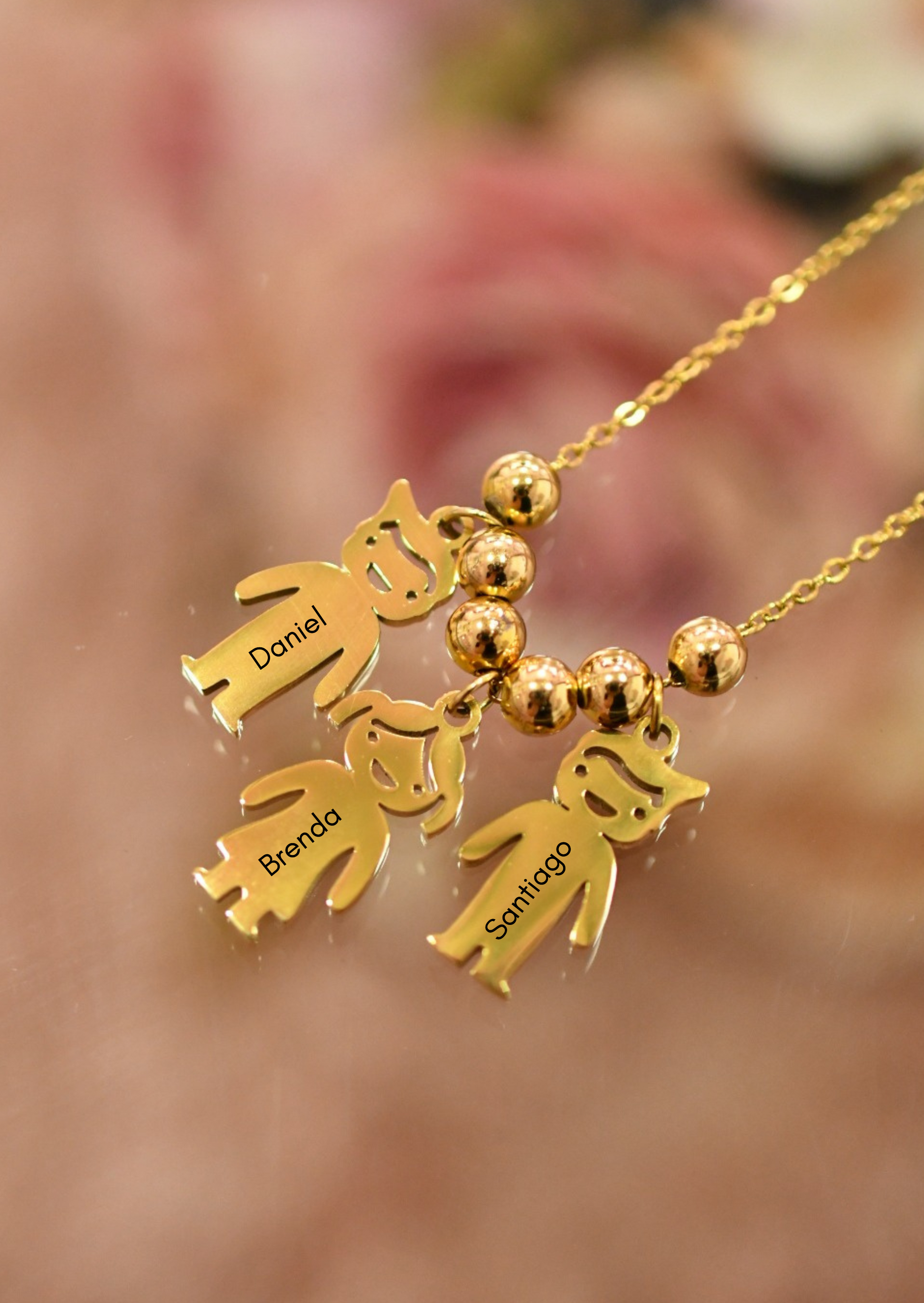 Elaborado de acero inoxidable chapado en oro 18k con nombres grabados a láser.
