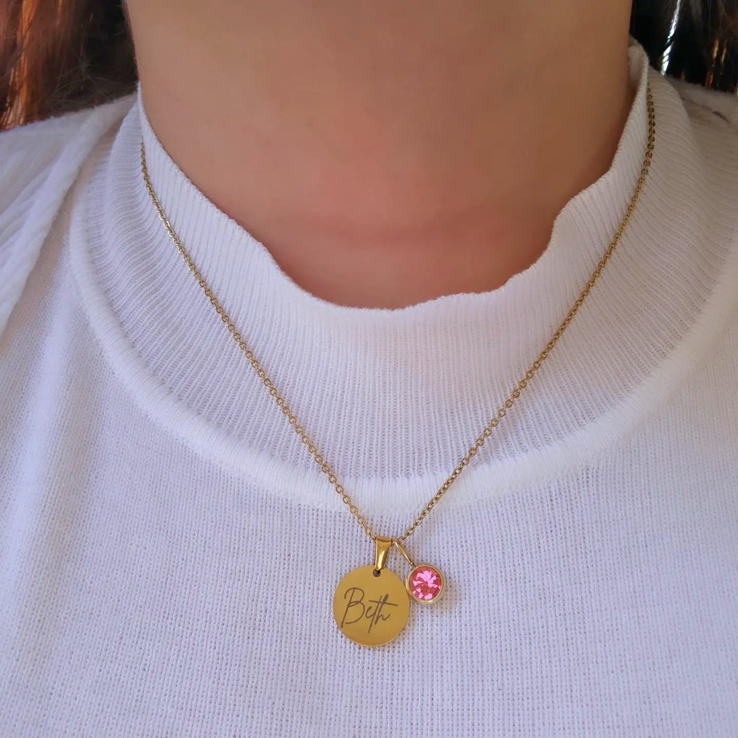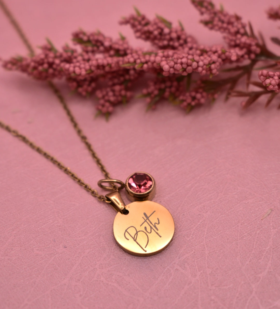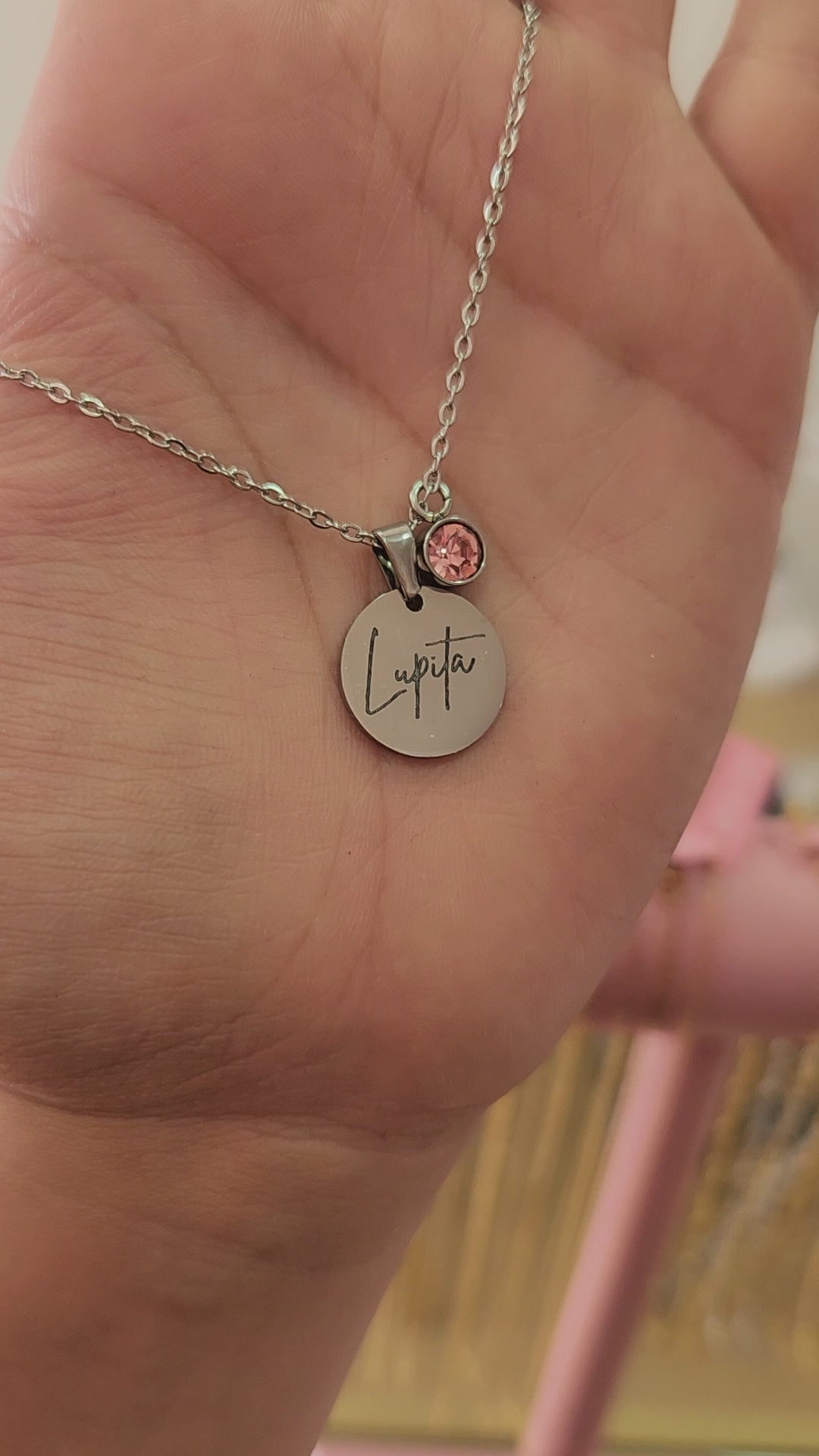 Tu nombre en una plaquita con la piedra del color que elijas!