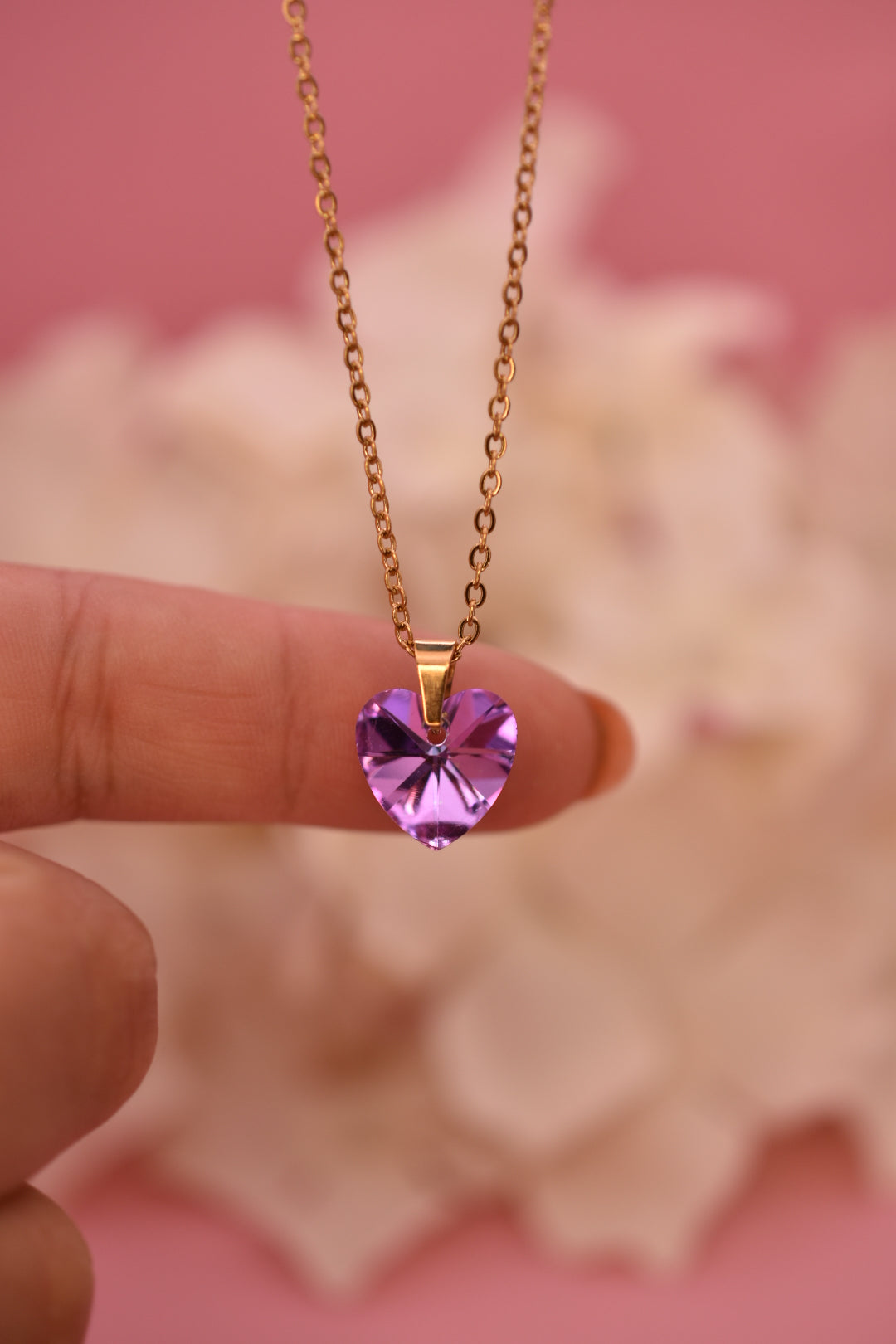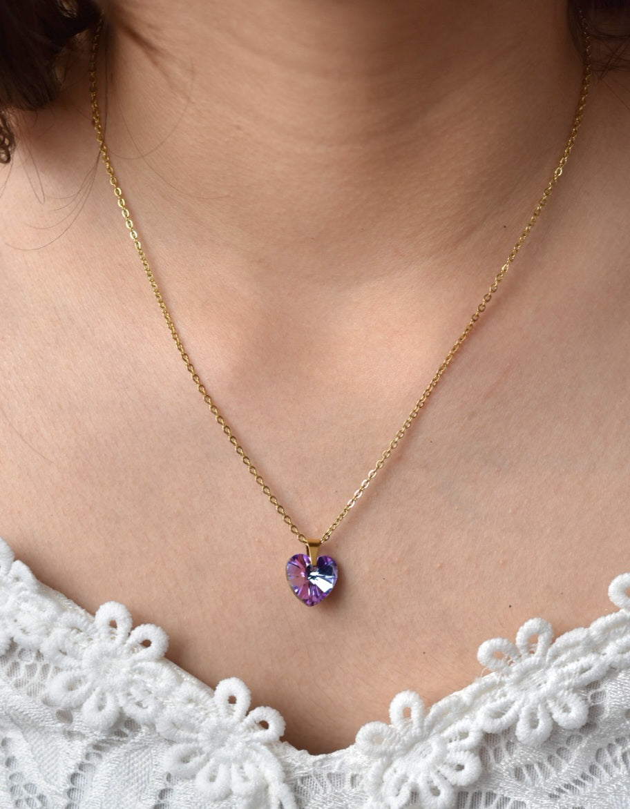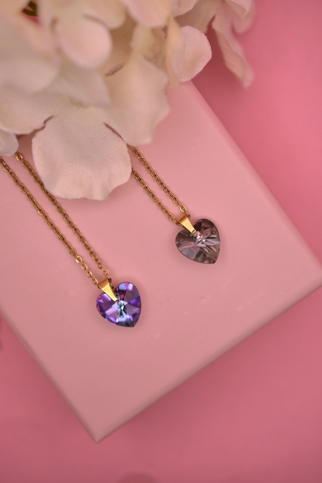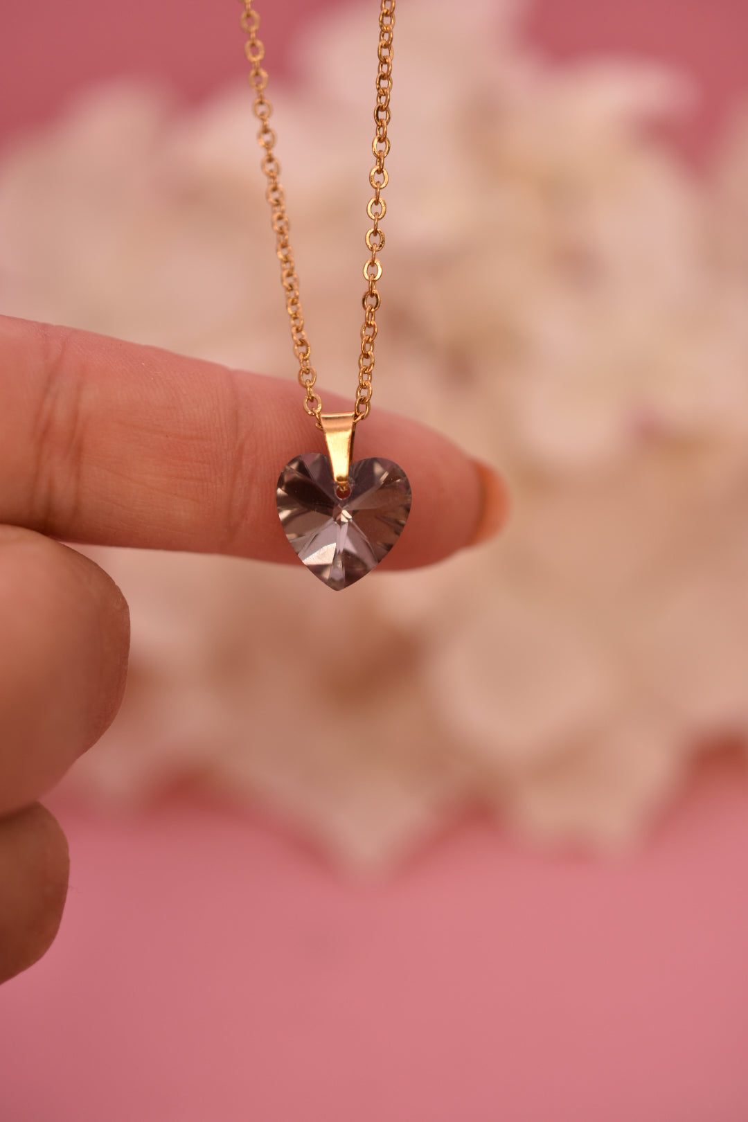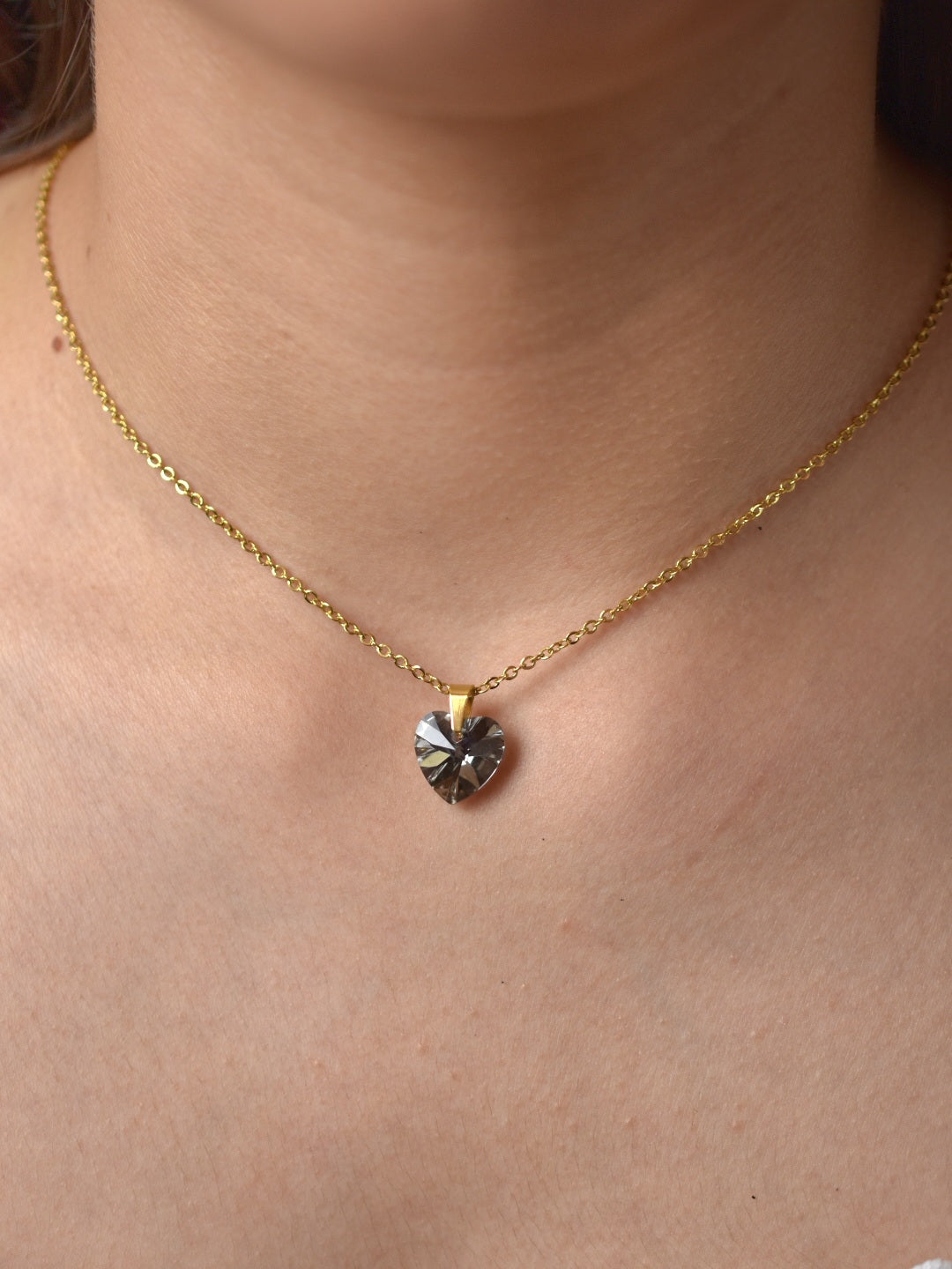 Dije de cristal con tonos oscuros y cadena de acero inoxidable.
