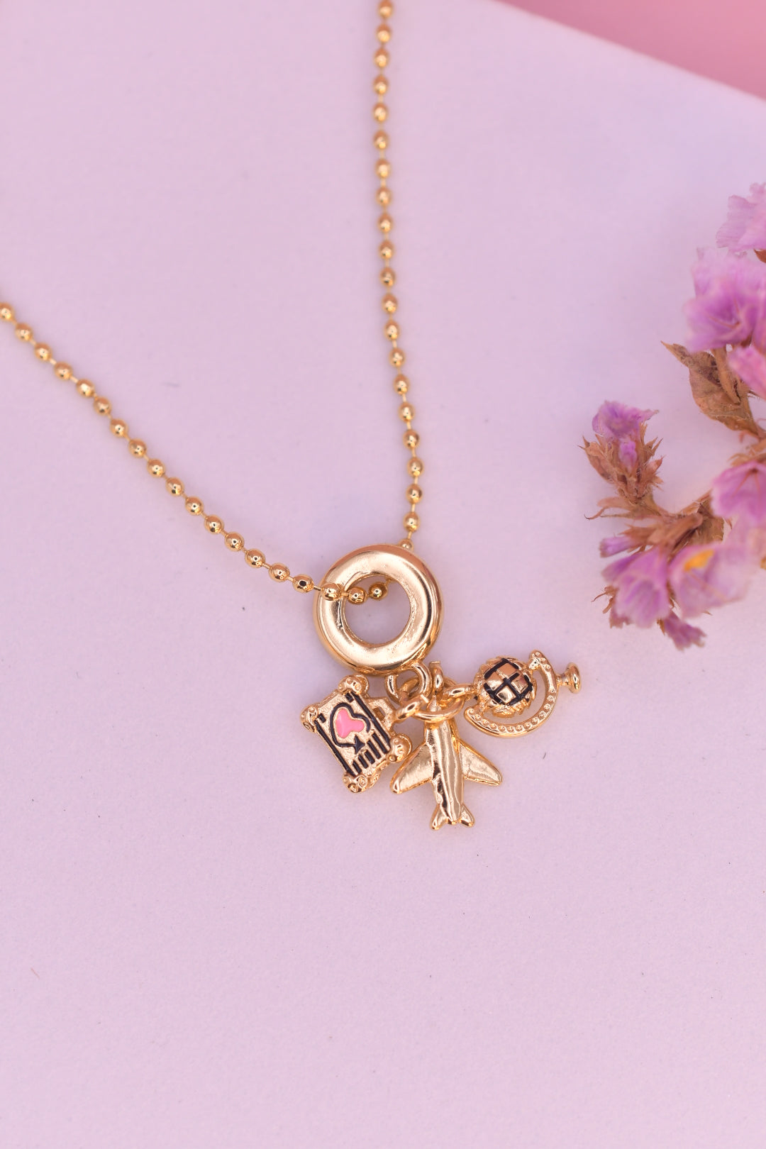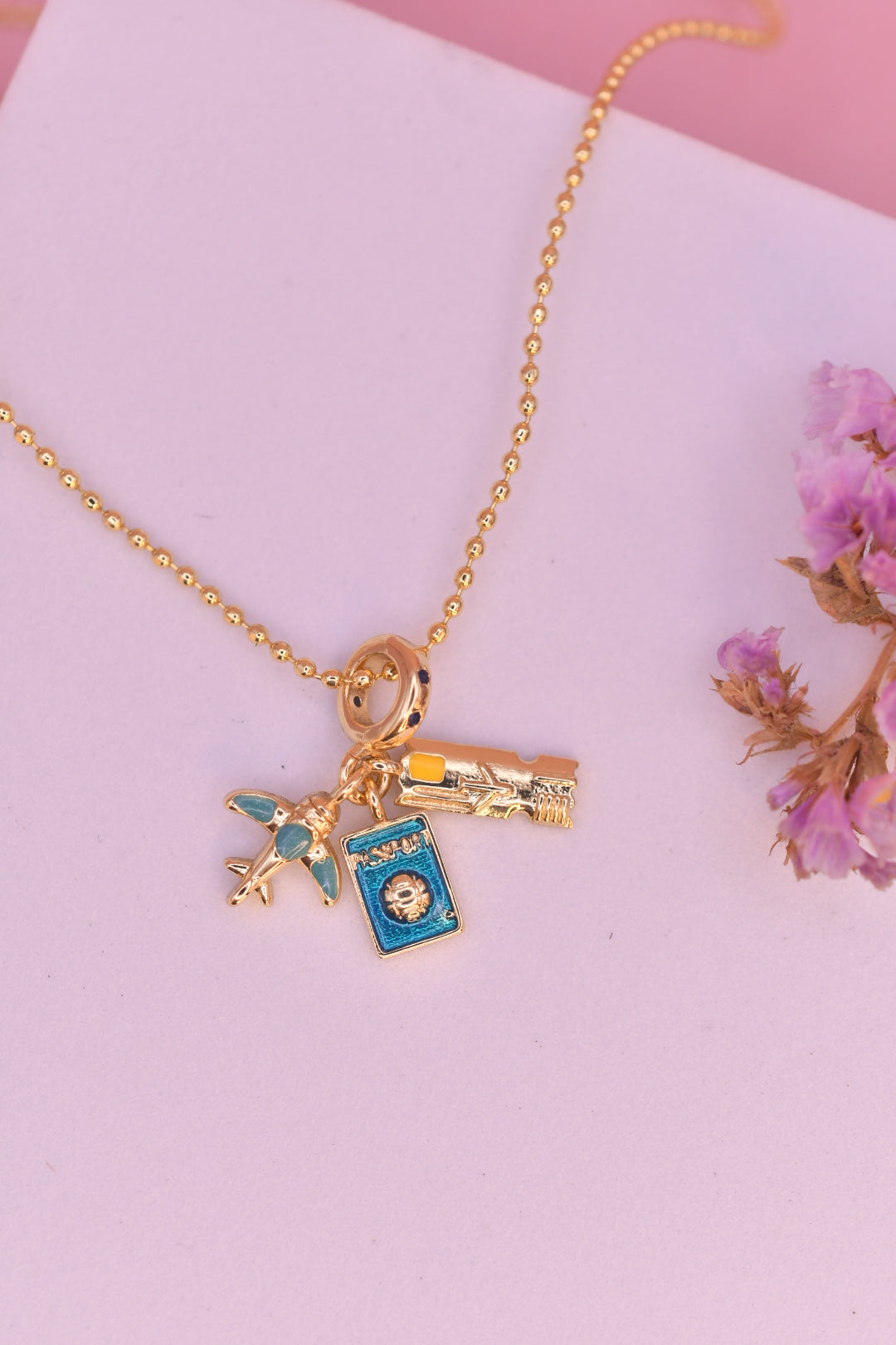 Multidije de chapa de oro con amuletos para manifestar viajes.