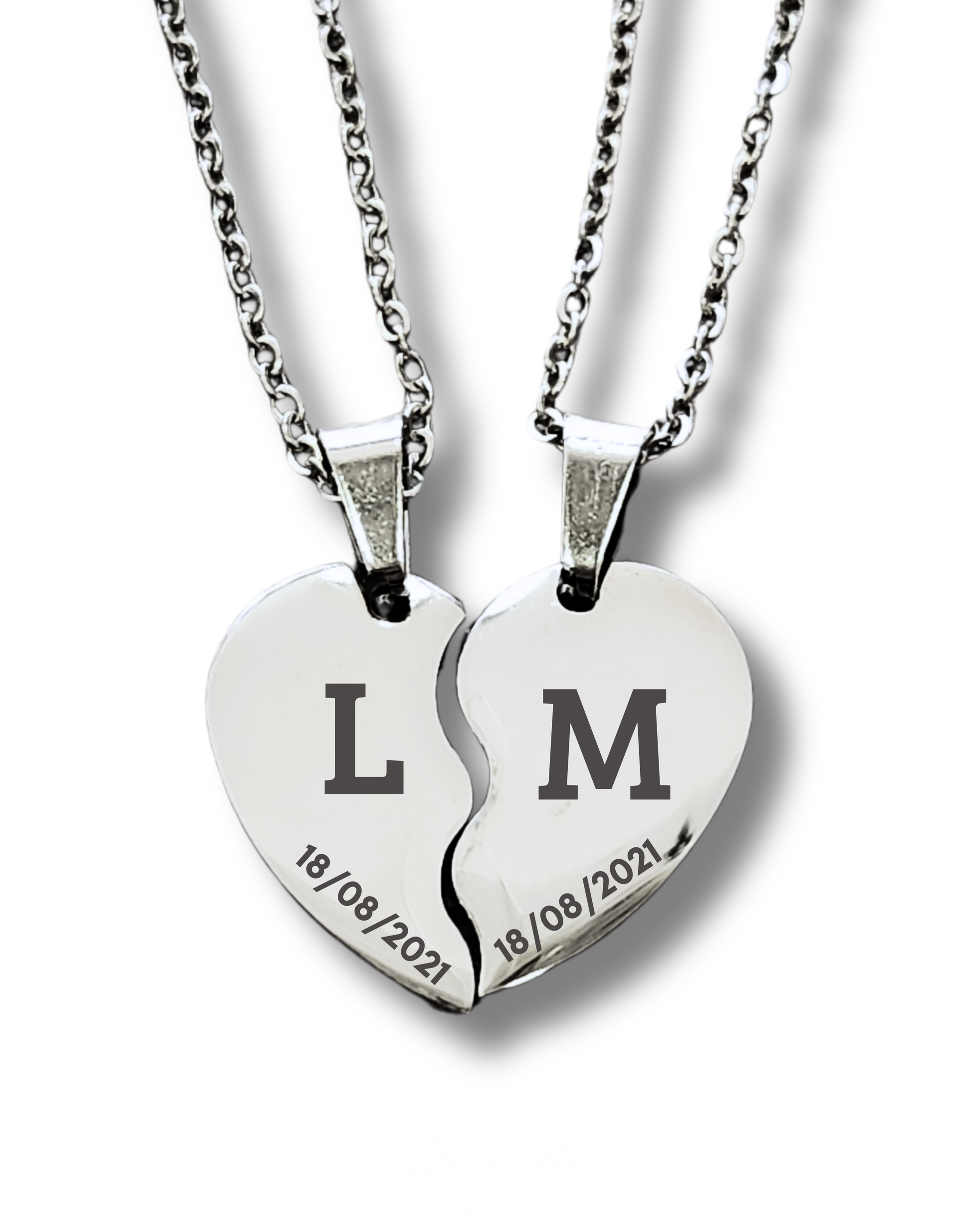 Dijes con cadena de acero inoxidable grabado con inicial y fecha (opcional).