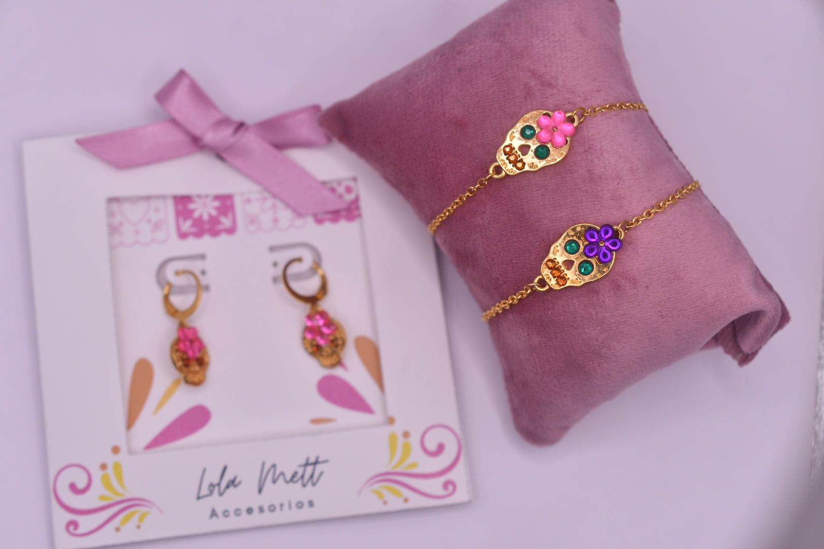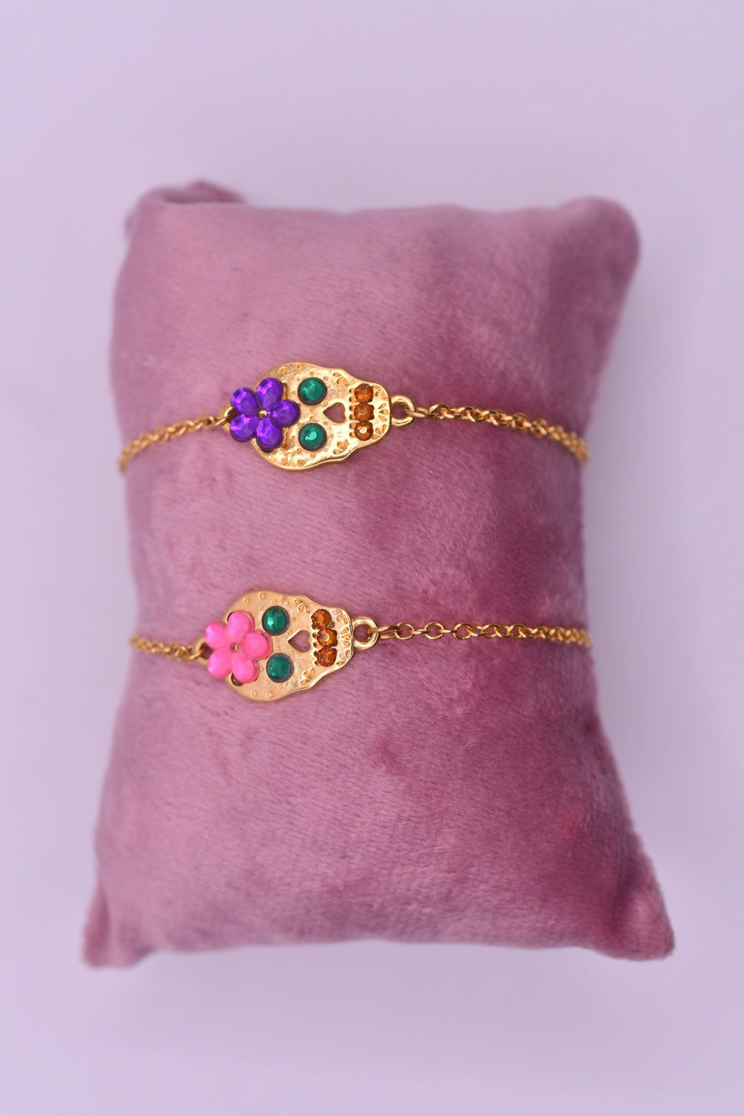 Pulseras chapadas en oro 14k con detalles de cristal y acrilico.